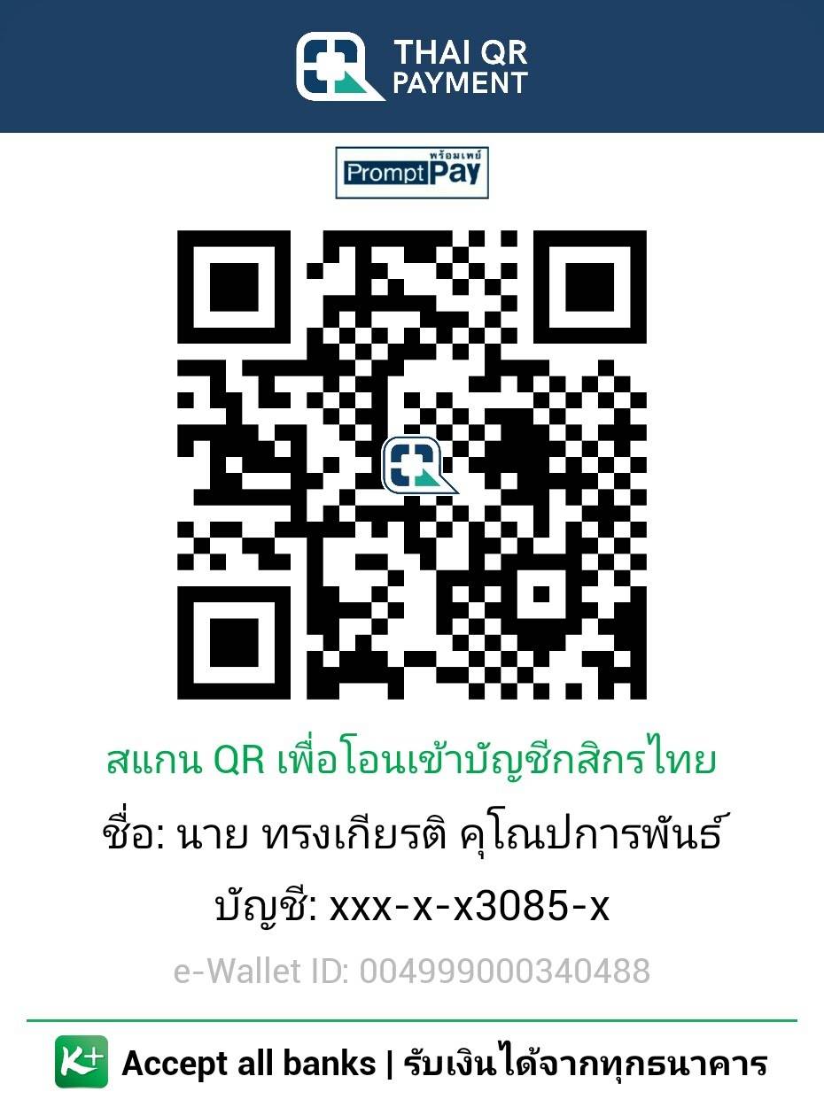 โดยสแกน QR Code นี้ (ถ้าชำระผ่าน QR Code นี้ ตอนแจ้งชำระเงิน รบกวนคุณลูกค้าระบุเป็นธนาคารกสิกรไทยนะครับ)